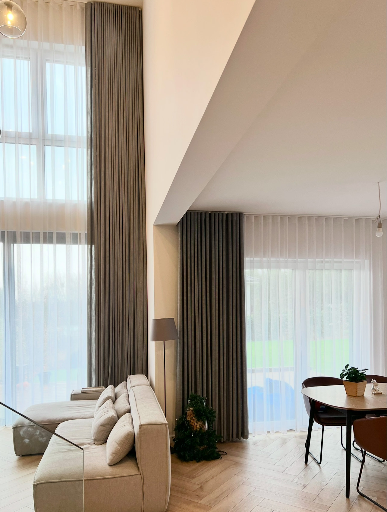 Minimalistyczna i stylowa aranżacja okien w salonie