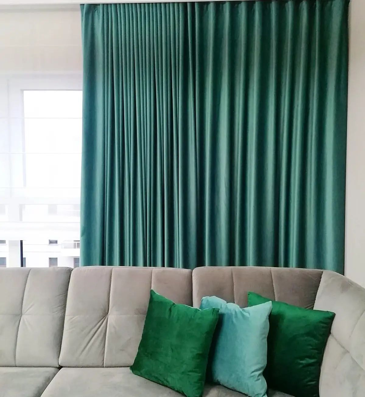 Gładkie zasłony i firany na wave w połączeniu z czarną szyną sufitową